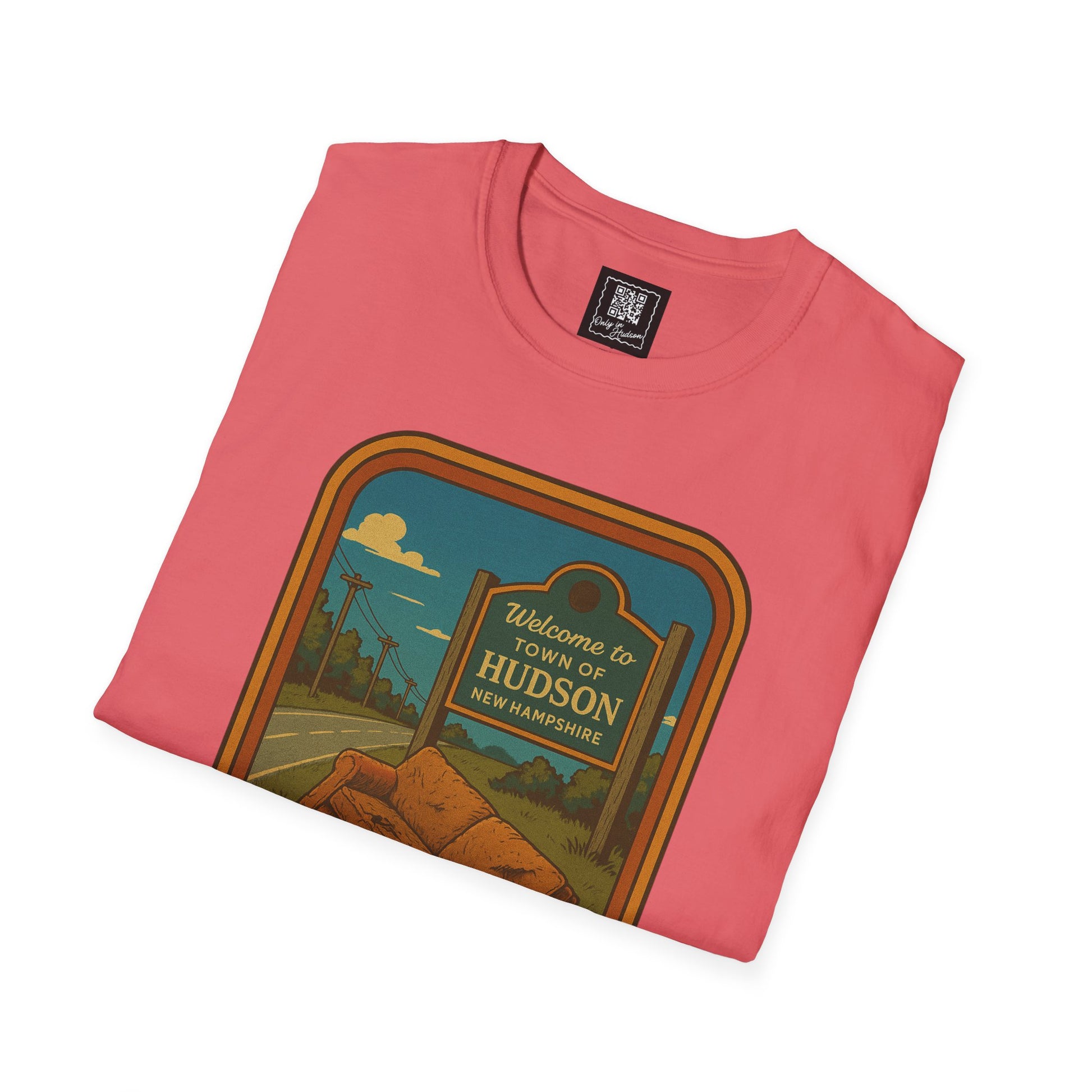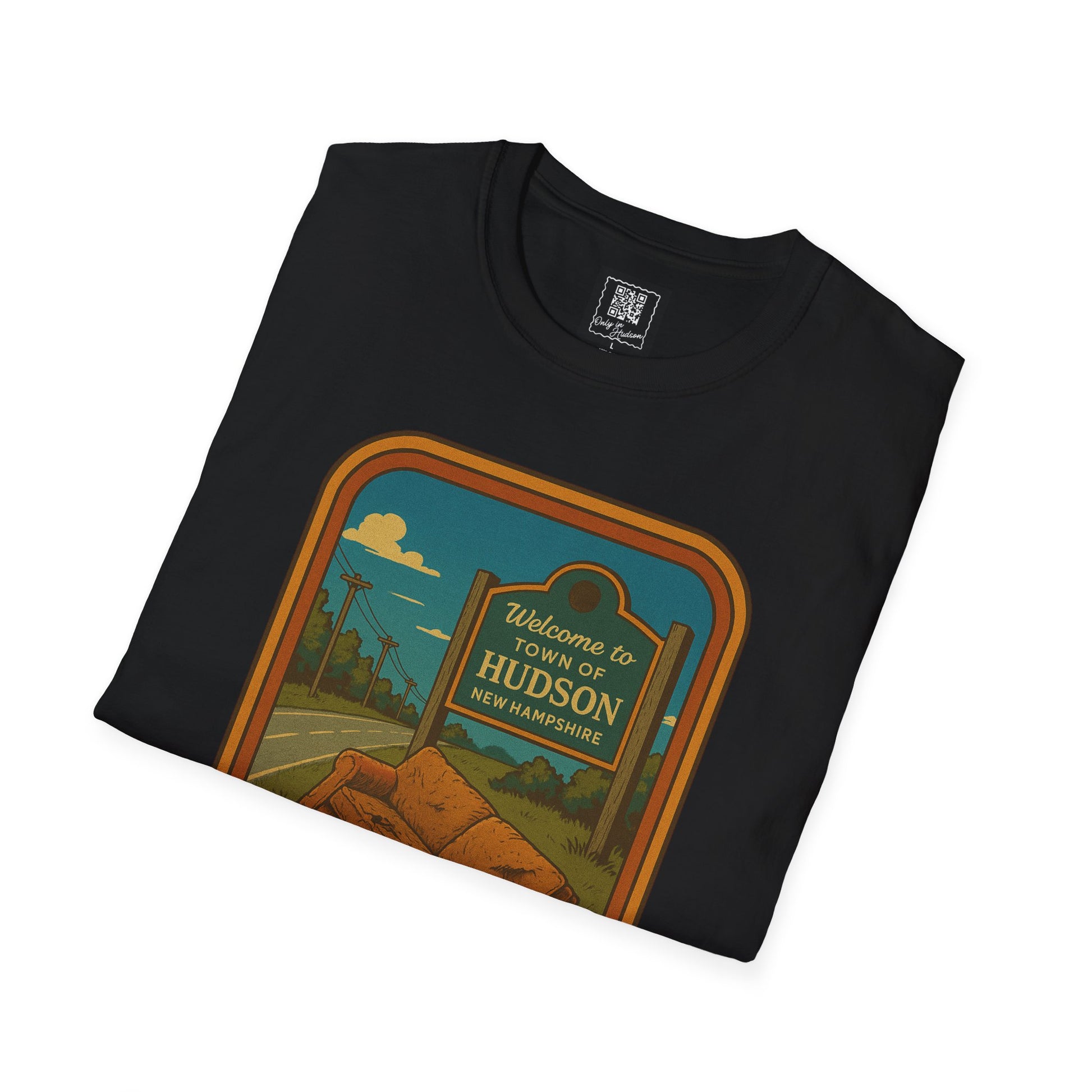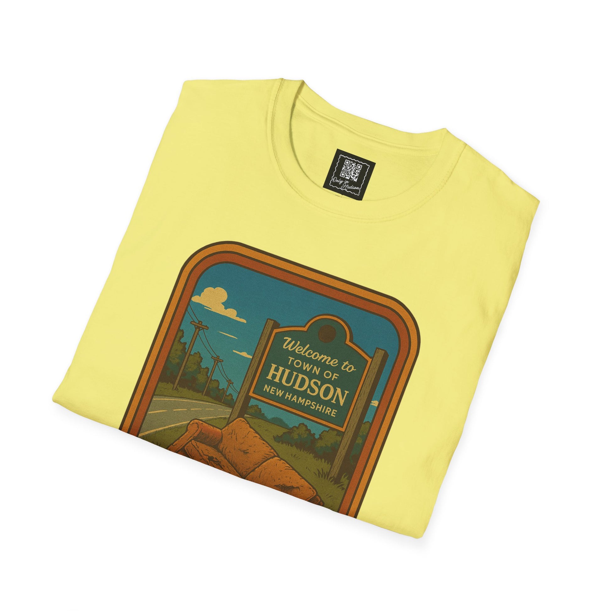 This shirt features a retro-style illustration of a sad little roadside couch sitting proudly in front of the Hudson welcome sign — a scene we’ve all driven past at least once (this week). It’s not your couch, but by God, you're going to post about it like it personally offended you.