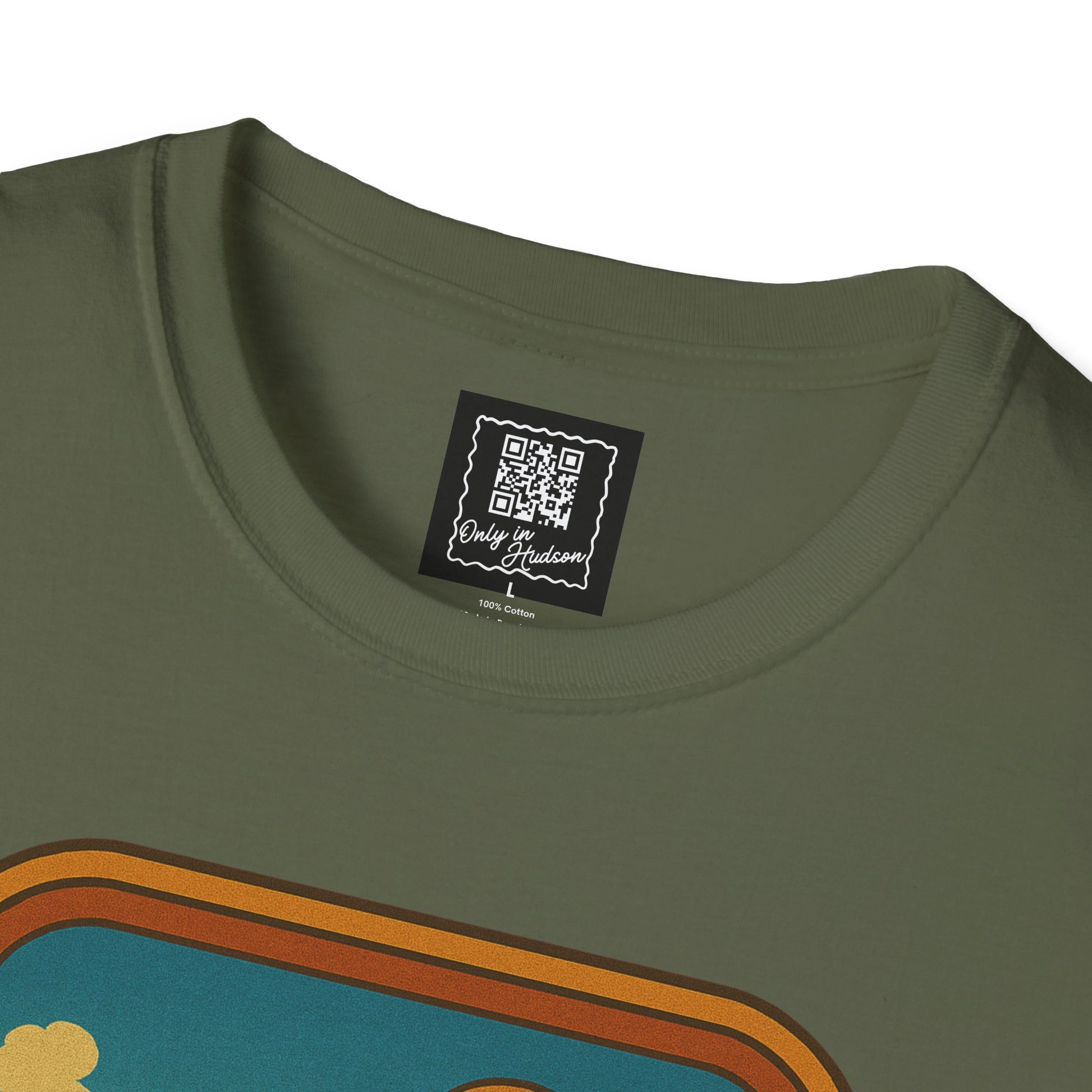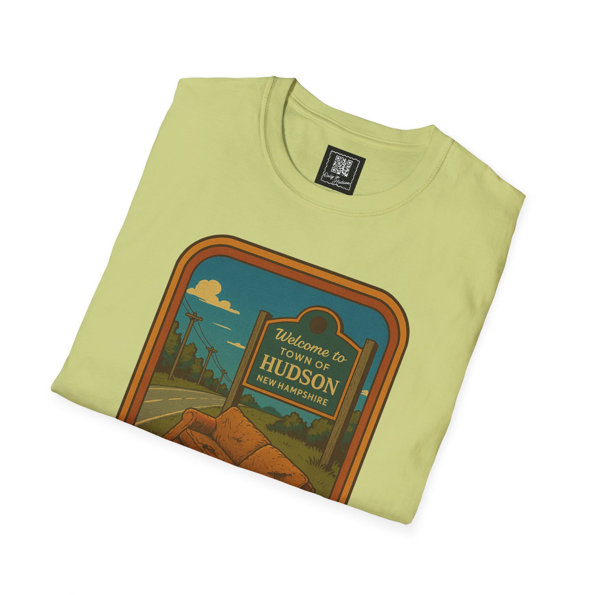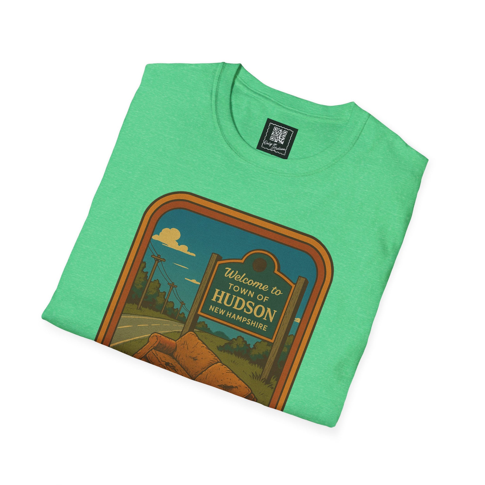 This shirt features a retro-style illustration of a sad little roadside couch sitting proudly in front of the Hudson welcome sign — a scene we’ve all driven past at least once (this week). It’s not your couch, but by God, you're going to post about it like it personally offended you.