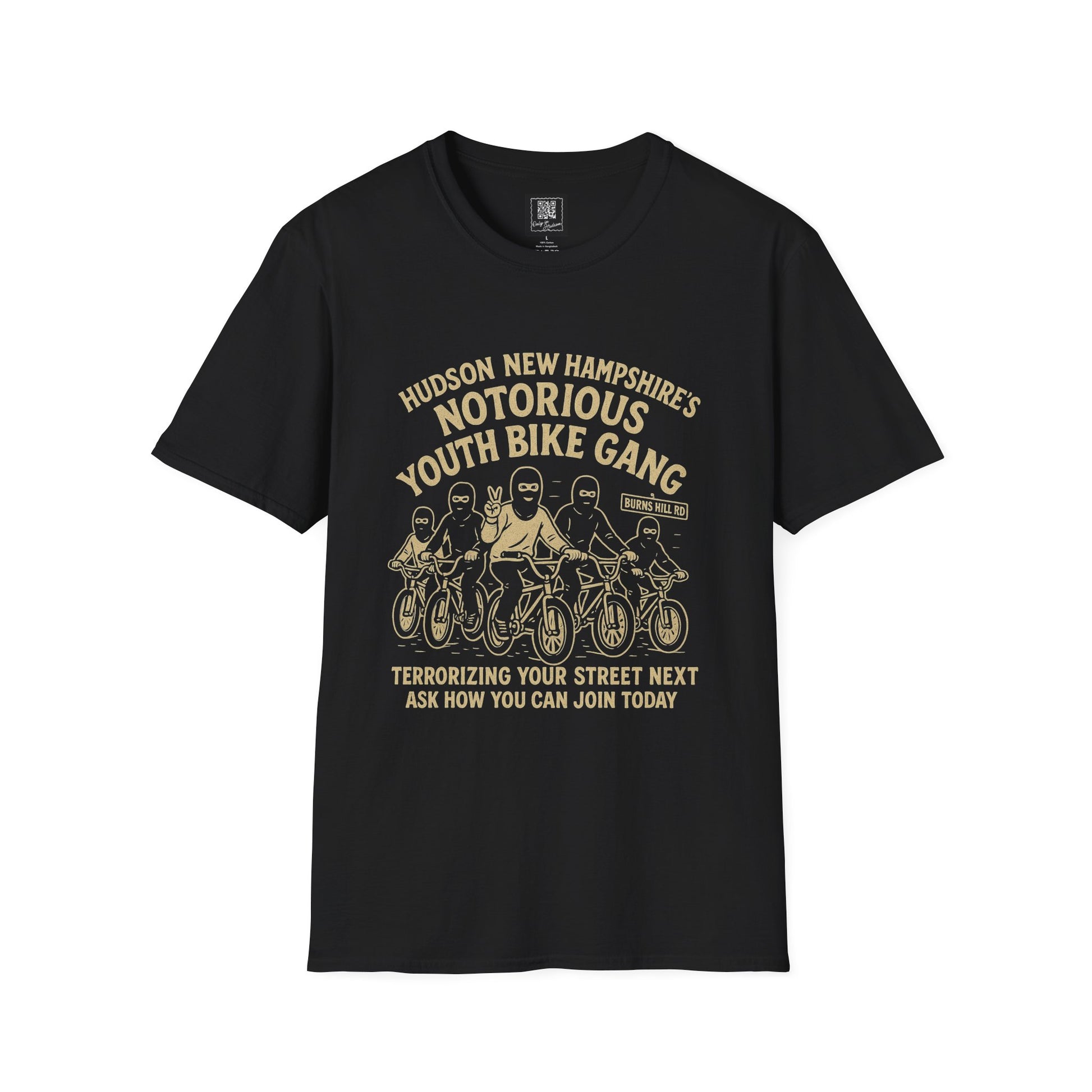 Introducing the shirt that perfectly captures the chaos you didn’t ask for: Hudson’s Youth Bike Gang – Street Menace Edition. Inspired by the town’s most talked-about Facebook villains, this tee celebrates the fearless (and helmet-optional) youth who treat Burns Hill like their personal racetrack. No masks, no rules, just raw adolescent energy and a total disregard for stop signs.
